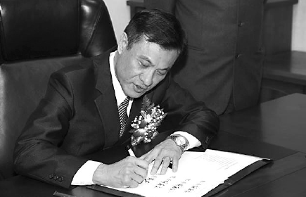 蘇嘉全1日當(dāng)選“立法院長(zhǎng)”后簽署第一份公文。