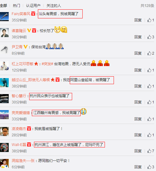 臺(tái)南也發(fā)生規(guī)模4.3地震,震央在臺(tái)南市新市區(qū)深31km,不少民眾半夜在睡夢(mèng)中被地震搖醒,全家一起沖下來,據(jù)傳臺(tái)南有10層以上的高樓倒塌,許多民眾嚇到失眠。
