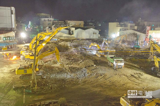 維冠大樓倒塌,報案協(xié)尋的人員在13日下午全部尋獲,13日晚間現(xiàn)場已幾乎清理為平地,即將展開重建之路。(圖片來源:臺灣《中時電子報》)