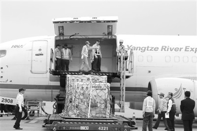 桃園機(jī)場也是臺灣最大的貨運(yùn)空港。圖為2011年臺灣贈送大陸的長鬃山羊和梅花鹿在此啟運(yùn)。本報記者 陳曉星攝