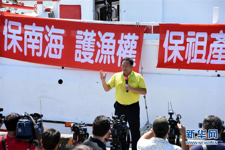 7月20日,活動發(fā)起人、泓海水產(chǎn)有限公司董事長鄭春忠在出發(fā)儀式上講話。當(dāng)日,5艘臺灣漁船從屏東縣東港鹽埔漁港出發(fā)前往太平島。漁民們希望用實(shí)際行動向世人證明,太平島是島不是礁,祖先留下的財(cái)產(chǎn)不容抹殺。新華社記者宋振平攝