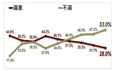對于林全的施政表現,僅28.0%民眾滿意,高達53.0%表示不滿意,比此前不滿意度增加5.8%。