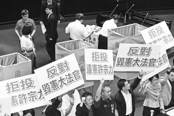10月25日,被許多臺灣法學教授認為是“臺灣司法的最黑暗一天”。這一天臺灣“立法院”通過了7名新任大法官的同意案,但其中幾人高調(diào)主張“兩國論”,拒唱“國歌”,并公開表示過“不認同中華民國憲法”。對于這樣的人最終高票得以擔任“解釋憲法、捍衛(wèi)憲政體制”的大法官,島內(nèi)有人稱簡直是“請鬼開藥單”,也有學者認為這是“法理臺獨的最后一里路”。