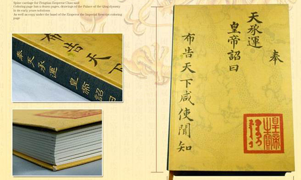據(jù)悉,該筆記本上面寫有“奉天承運 皇帝詔曰”等字,封面與封底有淺淺一條金龍為底。(王思羽)