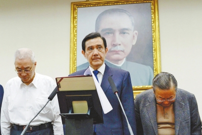 2014年臺(tái)灣“九合一”選舉國(guó)民黨大敗后不久,馬英九辭去國(guó)民黨黨主席職務(wù)。(臺(tái)媒圖)