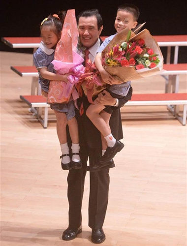 馬英九一開頭致詞便笑說,“我又來了”,因為他家距離靜心小學太近,一散步不小心就來這兒了,自己和靜心也一樣都是66歲,相當有緣。