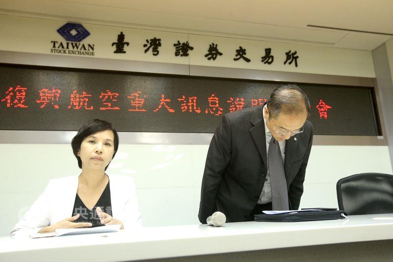 復(fù)航執(zhí)行長劉東明(右)鞠躬致歉