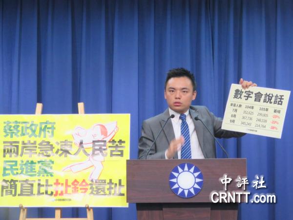 2015年9月陸客來臺34萬5243人,今年(2016)9月21萬4764人,負成長38%。