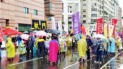 雖然陰雨不斷,現(xiàn)場仍有上百人身著雨衣長時間集結(jié)。集會團體紛紛表示,要“戳破”執(zhí)政黨的謊言騙術(shù),用行動表達民眾對“經(jīng)濟要民主”及“階級要平等”的要求!扒锒贰毙袆又笓]方稱,民進黨當局才上任半年,在“全面執(zhí)政”的優(yōu)勢下,非但沒有檢討此前遺留的各種政策性問題,反而在幾個有機會翻轉(zhuǎn)結(jié)構(gòu)的重大政策上退守,甚至復制并強推各種向資本傾斜、短線操作、只為選舉考慮的法案。