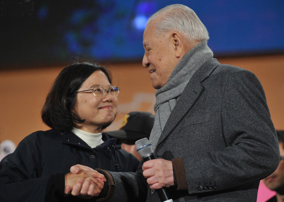 李登輝任內(nèi)讓臺(tái)灣省議會(huì)變?yōu)榕_(tái)灣省咨議會(huì),再無(wú)實(shí)行地方自治或監(jiān)督施政的權(quán)力。如今,蔡英文當(dāng)局讓臺(tái)灣省咨議會(huì)只剩“光桿議長(zhǎng)”。(李登輝與蔡英文互動(dòng) 網(wǎng)絡(luò)資料圖)
