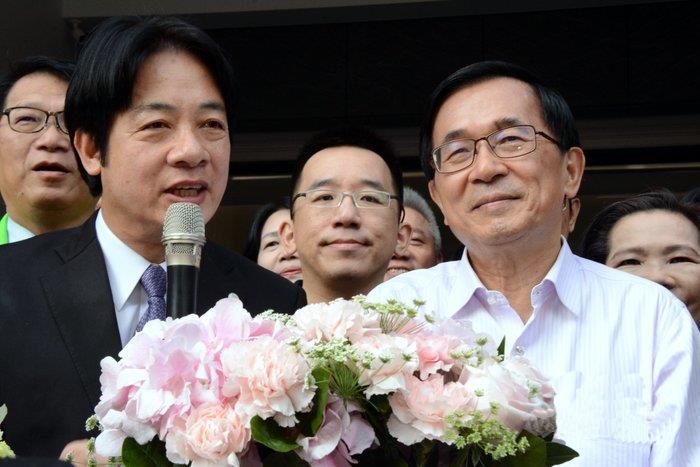 賴清德出席陳水扁女兒陳幸妤的牙醫(yī)診所開幕活動,并與陳水扁同臺并致詞。(圖片來源:中評社)