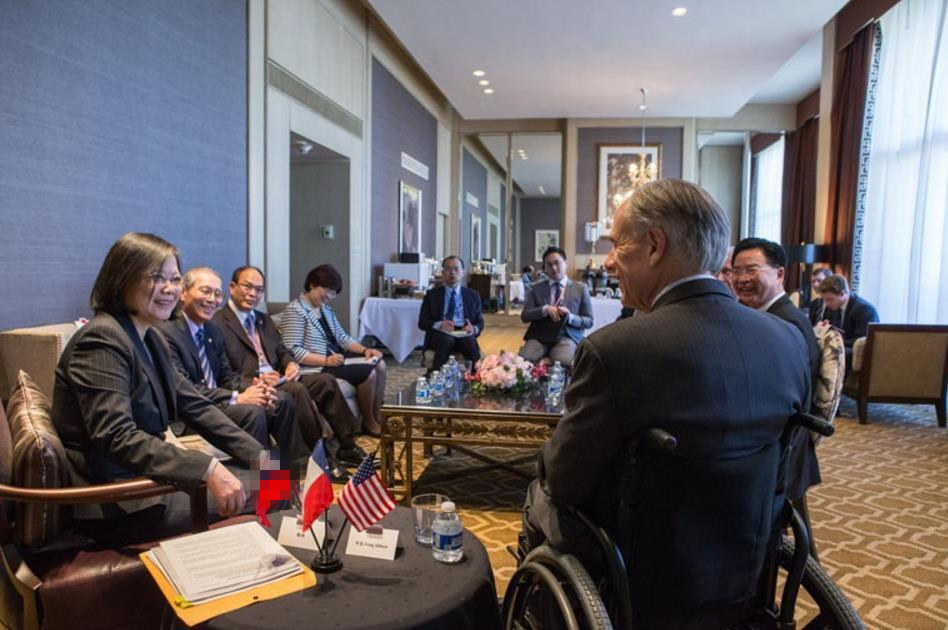 蔡英文與得克薩斯州州長(zhǎng)阿伯特會(huì)面(圖片來(lái)源:得州州政府網(wǎng)站)