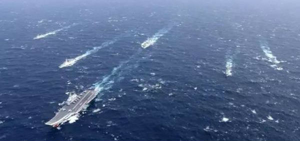 中國海軍航母編隊在海上航行。(圖片源自中國軍網(wǎng))