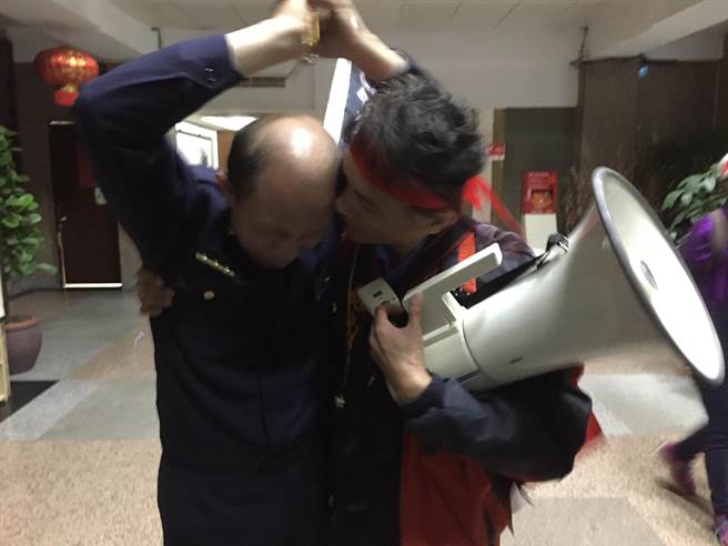 抗議群眾向警衛(wèi)表示“我們不是為難你”,并說“好,我們離開,趕快往‘立法院’集中”,一行人很快離去。