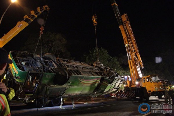 臺(tái)灣游覽車13日晚發(fā)生翻覆事故,造成33人死亡。(圖片來源:臺(tái)灣“東森新聞云”)