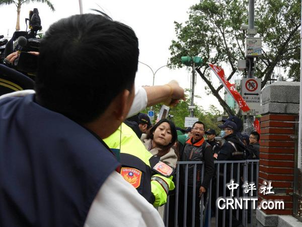 臺(tái)灣軍系團(tuán)體組織抗議活動(dòng)遭“獨(dú)派”組織鬧場,雙方現(xiàn)場對(duì)罵。(圖片來源:中評(píng)社)