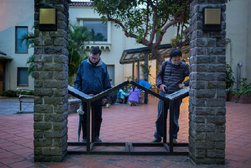 2月23日在臺(tái)北“二·二八”紀(jì)念館外的展覽。(圖片來源:美國(guó)《紐約時(shí)報(bào)》網(wǎng)站)