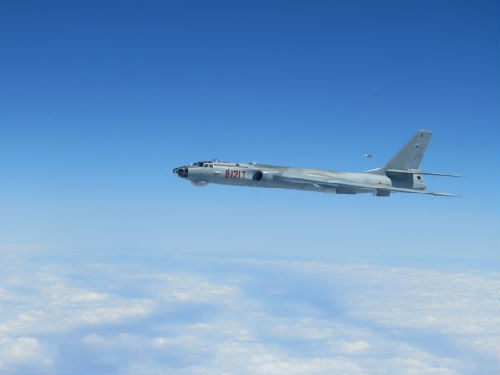 3月2日,在西太平洋某海域,解放軍海軍航空兵轟炸機(前)和殲擊機參加艦機實兵對抗演練。當日,海軍航空兵轟炸機、殲擊機、警戒機等多型多架飛機,經(jīng)宮古海峽赴西太平洋某海域,與航經(jīng)這一海域的海軍遠海訓練艦艇編隊進行了實兵對抗演練。