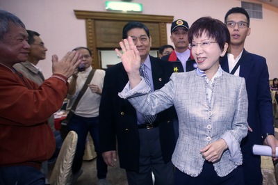 4日上午,中國國民黨主席洪秀柱出席在臺軍軍官俱樂部舉行的臺灣裝甲兵73周年隊?wèi)c暨會員大會。(圖片來源:臺“中央社”)