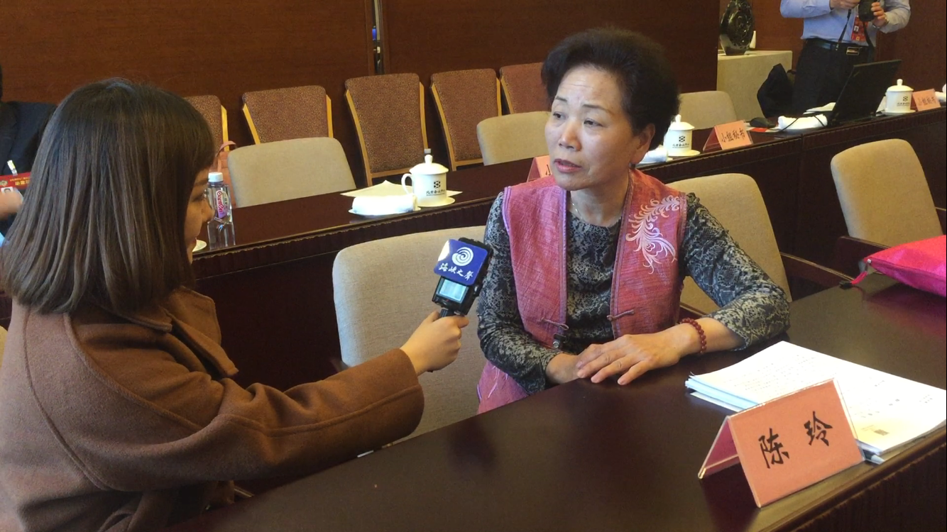 政協(xié)臺聯(lián)界別小組討論會間歇,臺籍委員陳玲接受本臺記者冉思清采訪