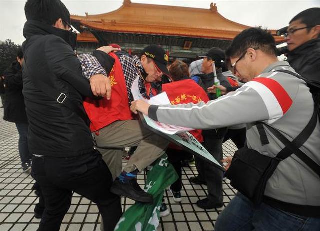 “228”紀(jì)念日當(dāng)天,臺(tái)灣“統(tǒng)獨(dú)”兩派曾在中正紀(jì)念堂前大打出手。(臺(tái)媒圖)