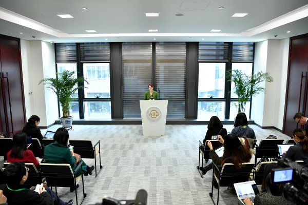 資料圖片:3月23日,亞投行新聞發(fā)言人歐若拉在發(fā)布會(huì)上介紹情況并答記者問。新華社記者 李鑫 攝