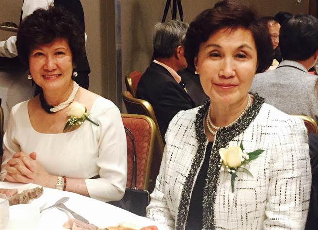 25日晚間,前臺灣地區(qū)領(lǐng)導(dǎo)人馬英九的大姐馬以南和三姐馬冰如在美國加利福尼亞州出席臺灣婦聯(lián)會舊金山分會活動。(圖片來源:臺“中時(shí)電子報(bào)”)