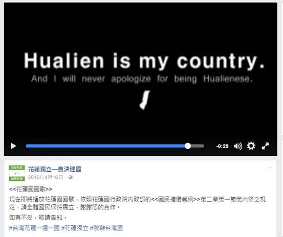 這是2013年《中國(guó)日?qǐng)?bào)》上刊登的一篇腦洞極大的文章的開(kāi)頭,一語(yǔ)成讖,2016年初,facebook上出現(xiàn)了“花蓮獨(dú)立—自決建國(guó)”的粉絲專(zhuān)頁(yè),引發(fā)了臺(tái)灣各縣市的“獨(dú)立”高潮: