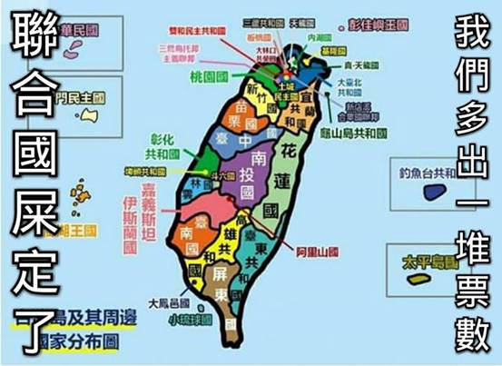 當(dāng)然,如果“獨(dú)立運(yùn)動(dòng)”僅僅限于縣市,就太小兒科了,哪能體現(xiàn)“自由意志”呢?于是,“板橋獨(dú)立”、“斗六獨(dú)立”甚至“龜山島獨(dú)立”也都噴涌而出。。。