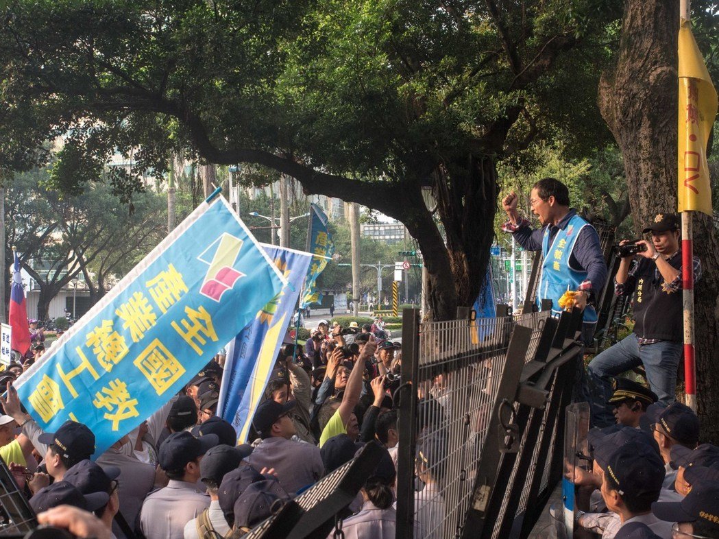 據(jù)臺灣“聯(lián)合新聞網(wǎng)”3月29日報道,29日一早,由臺灣警消聯(lián)盟大動員發(fā)起軍公教游行,游行分7路,抗議年金改革。其中全教產(chǎn)成員一早就包圍“教育部”,要求“教育部長”潘文忠出面說明,但他遲遲未出面,引發(fā)成員騷動。