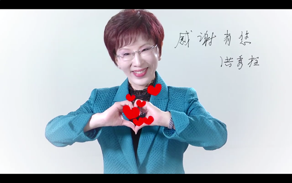 2017年3月30日,中國國民黨主席洪秀柱在就職1周年特別影片中,擺出“心”,“感謝有您”。(圖片來源:臺(tái)“中時(shí)電子報(bào)”)