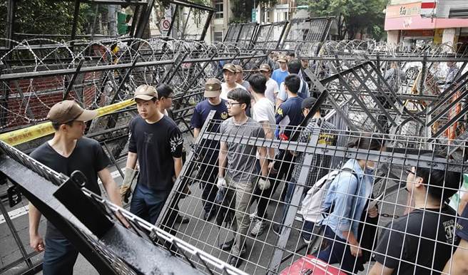 最后,警察將“立法院”出入口全部用拒馬封死。如果有人要出入,警察將嚴查證件后,人員才能從拒馬的隙縫出入。
