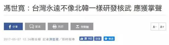 今天,臺灣“防長”馮世寬在參加一研討會發(fā)言時稱,臺灣永遠不會像朝鮮一樣搞核武器,應當獲得掌聲……