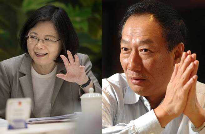 蔡英文(左)、鴻海集團董事長郭臺銘(右)。(圖片來源:臺灣《中時電子報》)
