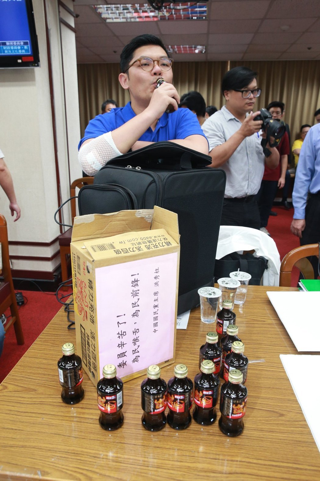 今日藍綠兩軍再度爆發(fā)激烈推擠沖突,人數(shù)占優(yōu)的民進黨團以人墻護衛(wèi)主席臺,國民黨團則不斷高喊“時程減半,八年改四年”等口號。藍、綠一度在主席臺前混戰(zhàn)、推擠,哨子、喇叭滿天響,面粉滿天飛,不少“綠委”都灰頭土臉。中國國民黨主席洪秀柱一早特意送來一箱的“蠻!保ňS生素功能飲料),為國民黨“立委”加油,要他們“喝了,再上!”。