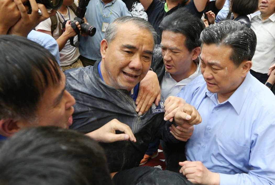 臺“立法院經(jīng)濟(jì)聯(lián)席委員”今日繼續(xù)審查“前瞻基礎(chǔ)建設(shè)特別條例”,再度引發(fā)藍(lán)綠大戰(zhàn)。民進(jìn)黨團(tuán)以人墻護(hù)衛(wèi)主席臺,國民黨團(tuán)則不斷高喊“時程減半,八年改四年”。會議主席、“綠委”高志鵬上臺開會,并宣讀條文,準(zhǔn)備逐條討論,但因朝野推擠強(qiáng)烈,條文只處理至第一條就宣布休息協(xié)商。