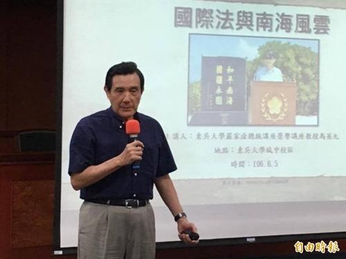 馬英九到學(xué)校演講南海議題與國際法。(來源:臺灣《自由時報》)