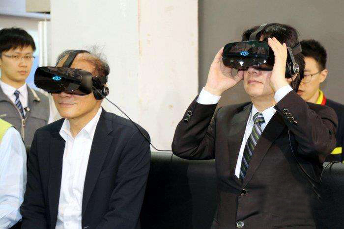 賴清德(右)年初在臺(tái)南陪林全(左)體驗(yàn)VR(虛擬實(shí)境)。(中評(píng)社圖)