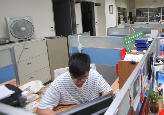 面臨限電危機,“行政院”31日表示兩周內中午的13時至15時不開冷氣,改以電扇代替,帶頭降低尖峰時刻用電量,圖為“行政院”所屬單位帶頭午間關閉冷氣節(jié)能。(臺媒圖)