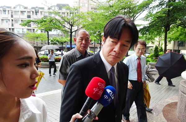 臺南市長賴清德今早出席活動,面對被追問治水成效,臉色凝重。(臺媒圖)