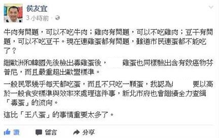 追查毒蛋 侯友宜:比“王八蛋”重要多。(圖片來源:臉譜網(wǎng))