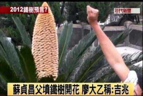 2011年4月,當(dāng)時(shí)民進(jìn)黨內(nèi)的蘇貞昌、蔡英文角逐黨內(nèi)臺(tái)灣地區(qū)領(lǐng)導(dǎo)人選舉提名,此時(shí)忽然有報(bào)道指出,蘇貞昌父親墳前的鐵樹開出了一朵約60厘米的花朵。因此有民俗學(xué)家表示,這是吉祥的征兆,蘇貞昌本人當(dāng)時(shí)則回應(yīng)“順天應(yīng)人”。