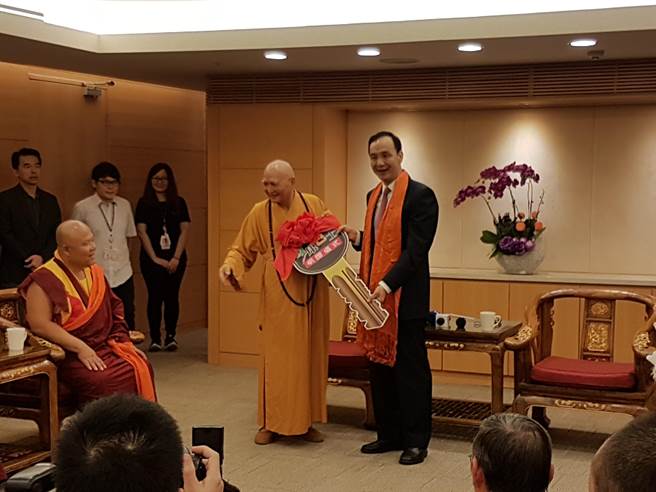 新北市長(zhǎng)朱立倫今(15日)出席捐贈(zèng)復(fù)康巴士?jī)x式(圖片來(lái)源:臺(tái)灣《中時(shí)電子報(bào)》)
