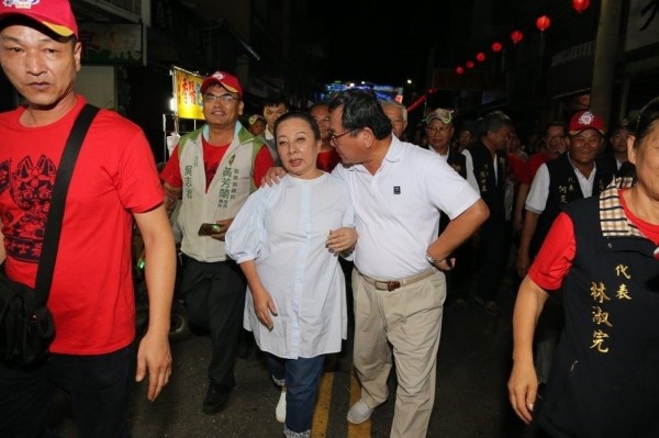民進(jìn)黨籍嘉義縣長(zhǎng)張花冠,上周出席活動(dòng)過程中,遭民進(jìn)黨“立委”陳明文亮度強(qiáng)行摟肩。(臺(tái)媒圖)