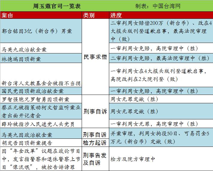 中國(guó)臺(tái)灣網(wǎng)10月7日訊 據(jù)臺(tái)灣《中時(shí)電子報(bào)》報(bào)道,臺(tái)灣名嘴周玉蔻,經(jīng)常自稱可透過特殊管道掌握內(nèi)幕消息,但卻屢因爆料而官司纏身,且因她錯(cuò)誤爆料,除被前臺(tái)灣地區(qū)領(lǐng)導(dǎo)人馬英九提告外,鴻海董事長(zhǎng)郭臺(tái)銘為了“3億男”案也對(duì)她提出高額的民事求償,這些官司中,她大多遭判賠或有罪,目前不少案件,正在法院審理中。