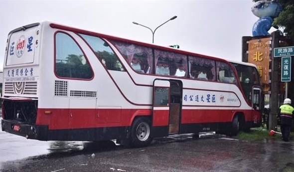 根據(jù)民眾指出,15日12時30分,載著大陸游客的游覽車,自光復路北往南行經(jīng)省道臺九線北埔路段往花蓮方向時,因當時雨勢滂沱,游覽車疑似為閃避由民族路西向東的一輛小客車,造成游覽車閃避不及自撞地標。不過詳細事故原因正由新城警方調(diào)查中。(中國臺灣網(wǎng) 李寧)