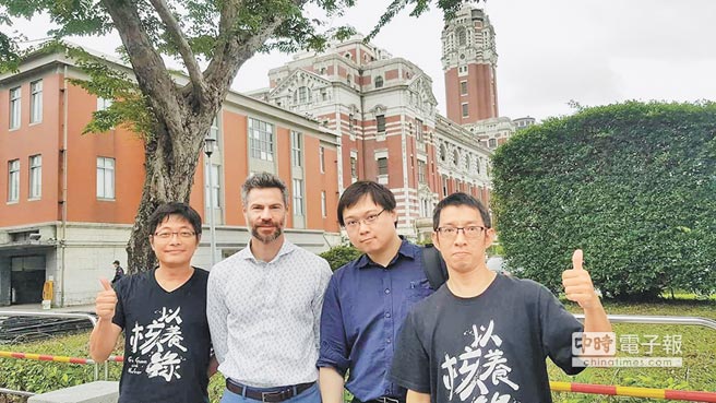 “氣候先鋒者聯(lián)盟”成員,左起黃其君、沙倫博格、黃士修、楊家法。(圖片來源:臺灣《中國時報》)
