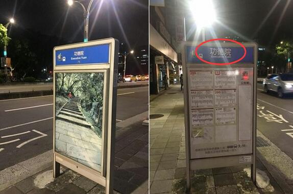 但不料“賴神”大名還未動,臺當(dāng)局“行政院”就先被改了。一名網(wǎng)友發(fā)文表示,30日晚間與朋友聚會后搭乘公車準(zhǔn)備返家,不料卻赫見公車站牌上的“行政院”竟然被改成了“功德院”,還附上照片佐證,之后詢問眾人“有沒有‘院長’功德強(qiáng)到連公車站牌都改名的八卦”。