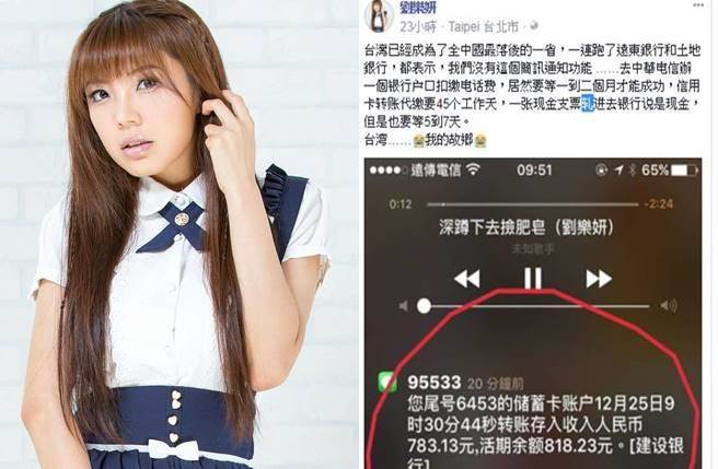 劉樂妍昨日在臉書發(fā)文,開頭就炮轟“臺(tái)灣已經(jīng)成為了全中國(guó)最落后的一省”。她表示,在臺(tái)灣趁著空檔去了遠(yuǎn)東銀行和土地銀行辦事,才發(fā)現(xiàn)沒有短信通知功能;去“中華電信”申辦銀行戶頭繳電話費(fèi),沒想到作業(yè)流程竟需要一到二個(gè)月;信用卡代繳要45個(gè)工作日,就連現(xiàn)金支票入到銀行也要等5到7天。如此的低效讓她不得不感嘆:“臺(tái)灣…我的故鄉(xiāng)”。(中國(guó)臺(tái)灣網(wǎng) 楊永青)