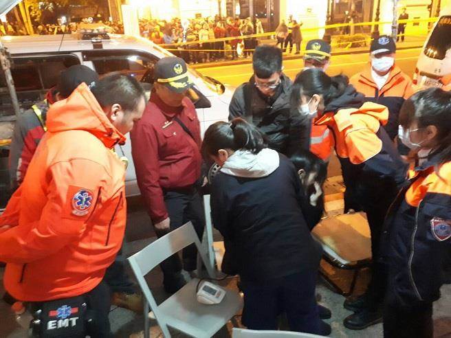 大直美麗華焰火意外傷者,在現(xiàn)場(chǎng)救護(hù)站人員處理后,所幸并無(wú)大礙。(圖片來(lái)源:臺(tái)灣《中時(shí)電子報(bào)》)